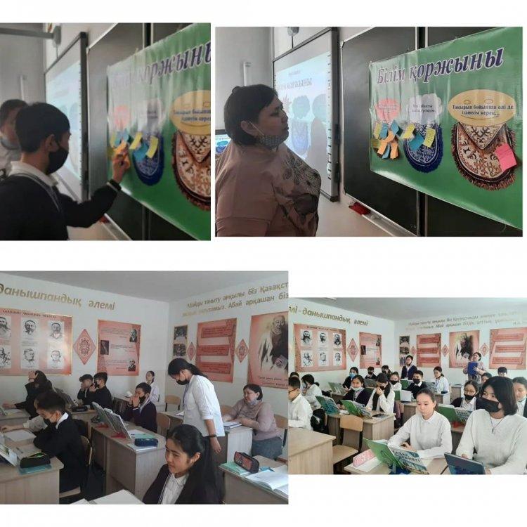 Шығыс Қазақстан облысы білім басқармасы Семей қаласы бойынша білім бөлімінің "Ыбырай Алтынсарин атындағы №37 гимназиясы" коммуналдық мемлекеттік мекемесінің 7 "Б" сыныбында қазақ әдебиеті пәнінен "Қ.Қайсеновтің "Жау тылындағы бала" хикаятындағы кейіпкерлер бейнесі" тақырыбында зерттеу сабағы өткізілді. Оқу мақсатына жету үшін "Тұжырымдамалық кесте", "Хикая картасы", "Фишбоун", "Инсерт" әдістері қолданылды. Зерттеу сабағының тақырыбы: "Қазақ тілі мен қазақ әдебиеті сабақтарында айтылым дағдыларын жетілдіруге арналған тиімді әдістерді қолдану арқылы оқушылардың сөйлеу әрекеттерін дамыту". Пән мұғалімі: Ш.Б.Каптагаева
