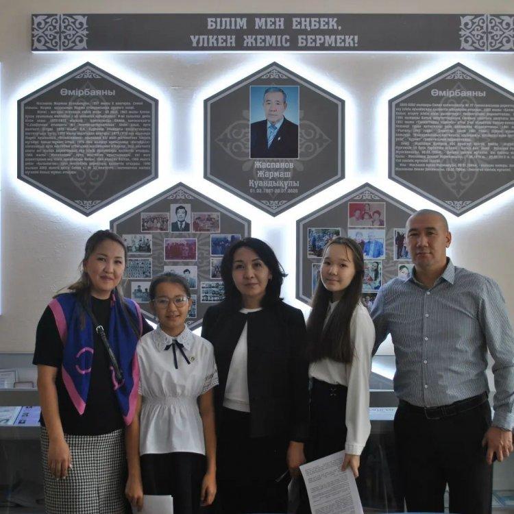 Гимназиямызда 15 жыл директордың оқу ісі жөніндегі орынбасары міндетін атқарған, өз ісінің майталманы, әріптестері мен шәкірттерінің жүрегіне жол таба білген, әділ де білікті басшы болған Жармаш Қуандықұлы атына кабинет ашу туралы отбасы тарапынан ұсыныс жасалып, гимназия ұжымынан қолдау тапты. Кабинет алдағы уақытта оқушылардың болашағына қызмет атқарады деген сенімдеміз.