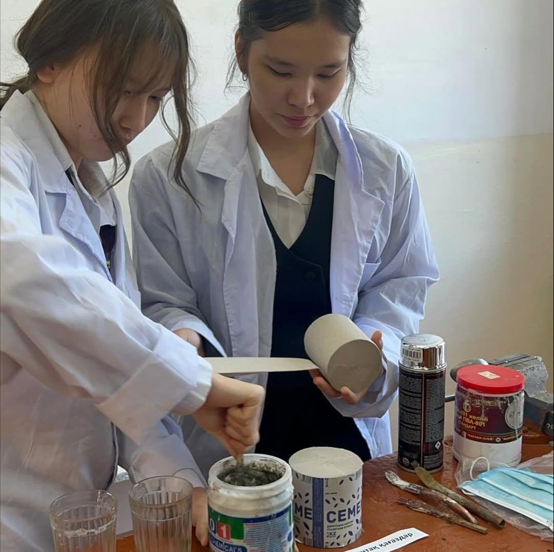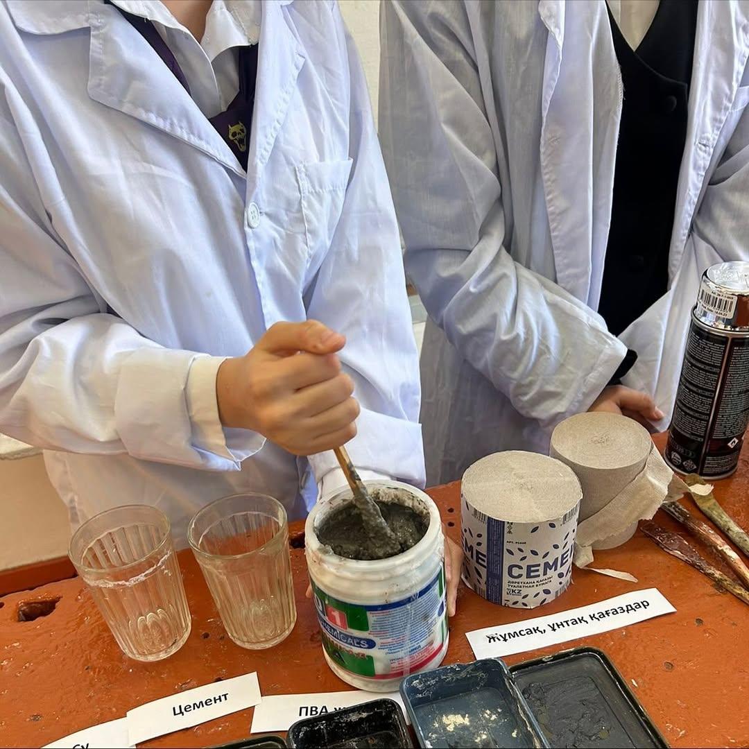 Химия пәні мұғалімі Шәріпхан Алма Ермекқызының “Химия және зерттеу тәжірибесі” курсының авторлық бағдарламасы негізінде түрлі тақырыпта оқушылар зерттеу жұмыстарымен айналысады. Оқушылар мүсін жасауда қолданатын” жаңа қоспа” түрін ойлап тауып, оның құрамын анықтап, көркем еңбек пәні мұғалімі Елзат Шарбатовичпен бірлесіп ғылыми жоба жасады.