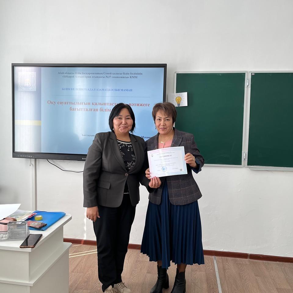 29.10.25ж. Абай ауданы Қарауылда өткен “PIRLS стандартына сәйкес бастауыш сынып оқушыларының оқу сауаттылығын дамыту” тақырыбындағы облыстық семинарда бастауыш сынып мұғалімі Ә.М. Азаматова іс-тәжірибесімен бөлісті.