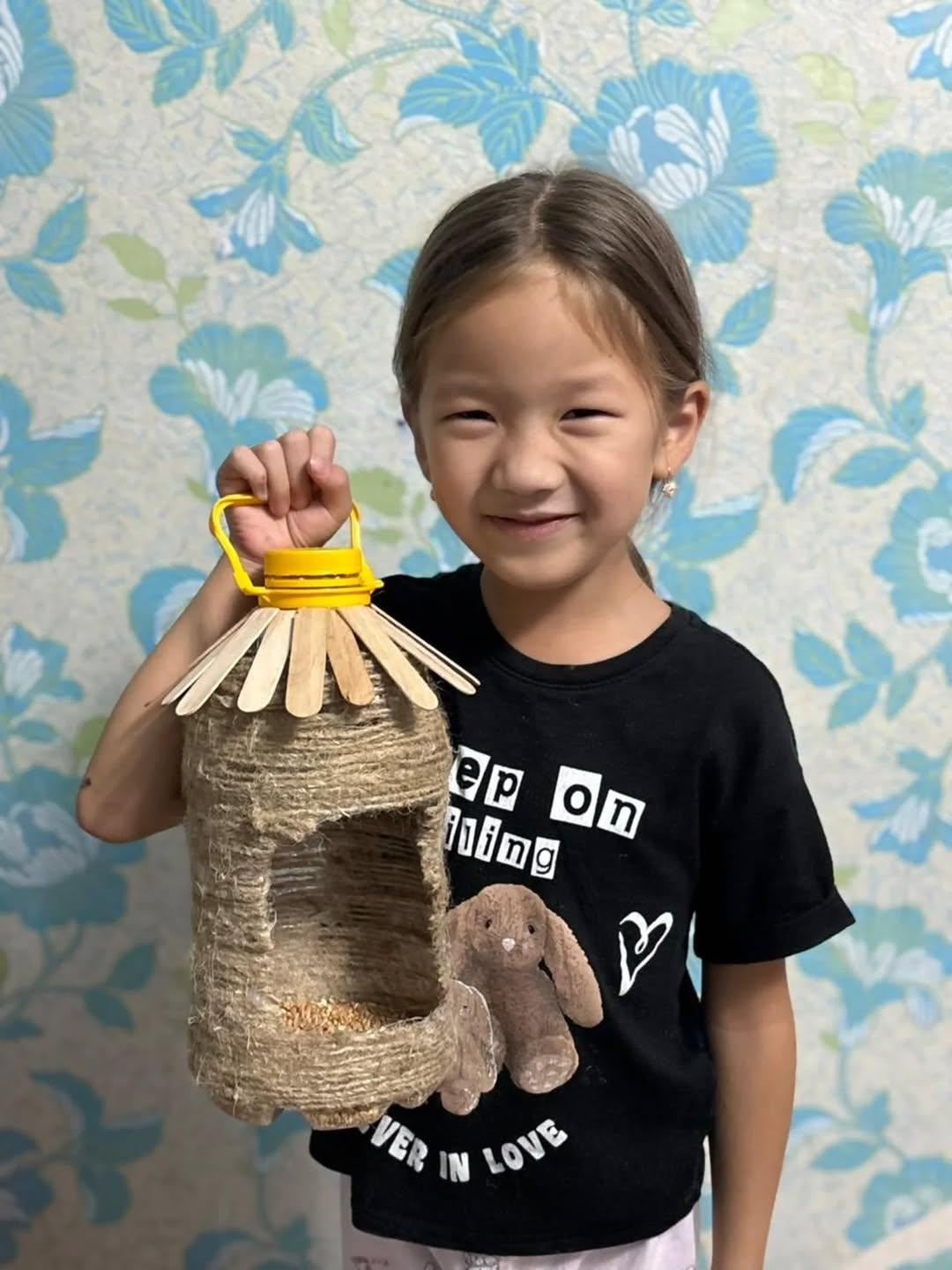 Сіздер өз қолдарыңызбен жасап шыққан жемшашарлар арқылы табиғатқа қамқорлық танытып, кішкентай достарымыз — құстарға ерекше мейірім көрсеттіңіздер.