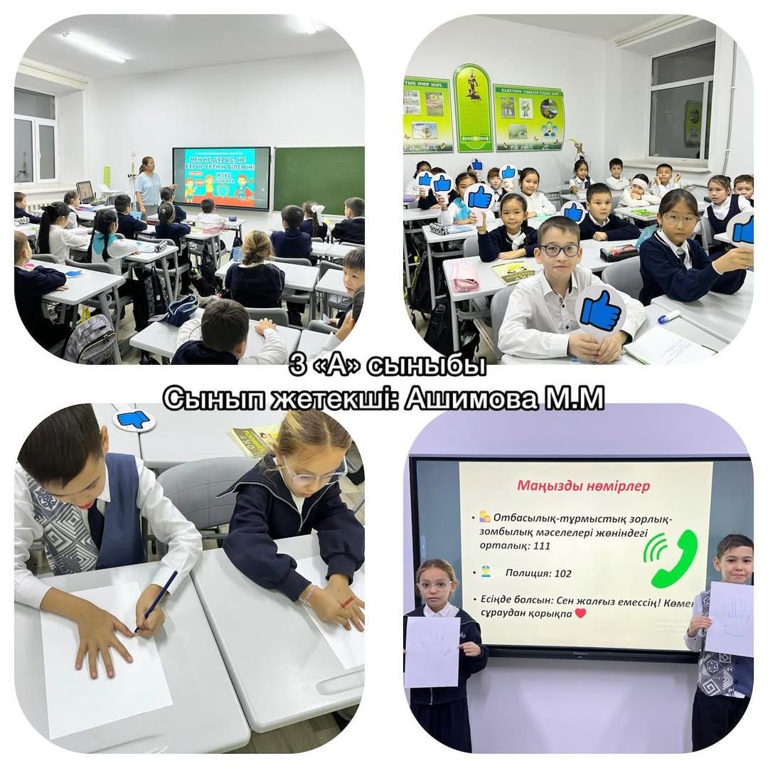 Сабақ барысында оқушыларға зорлық-зомбылықтың түрлері мен жеке шекаралар туралы түсінік берілді.