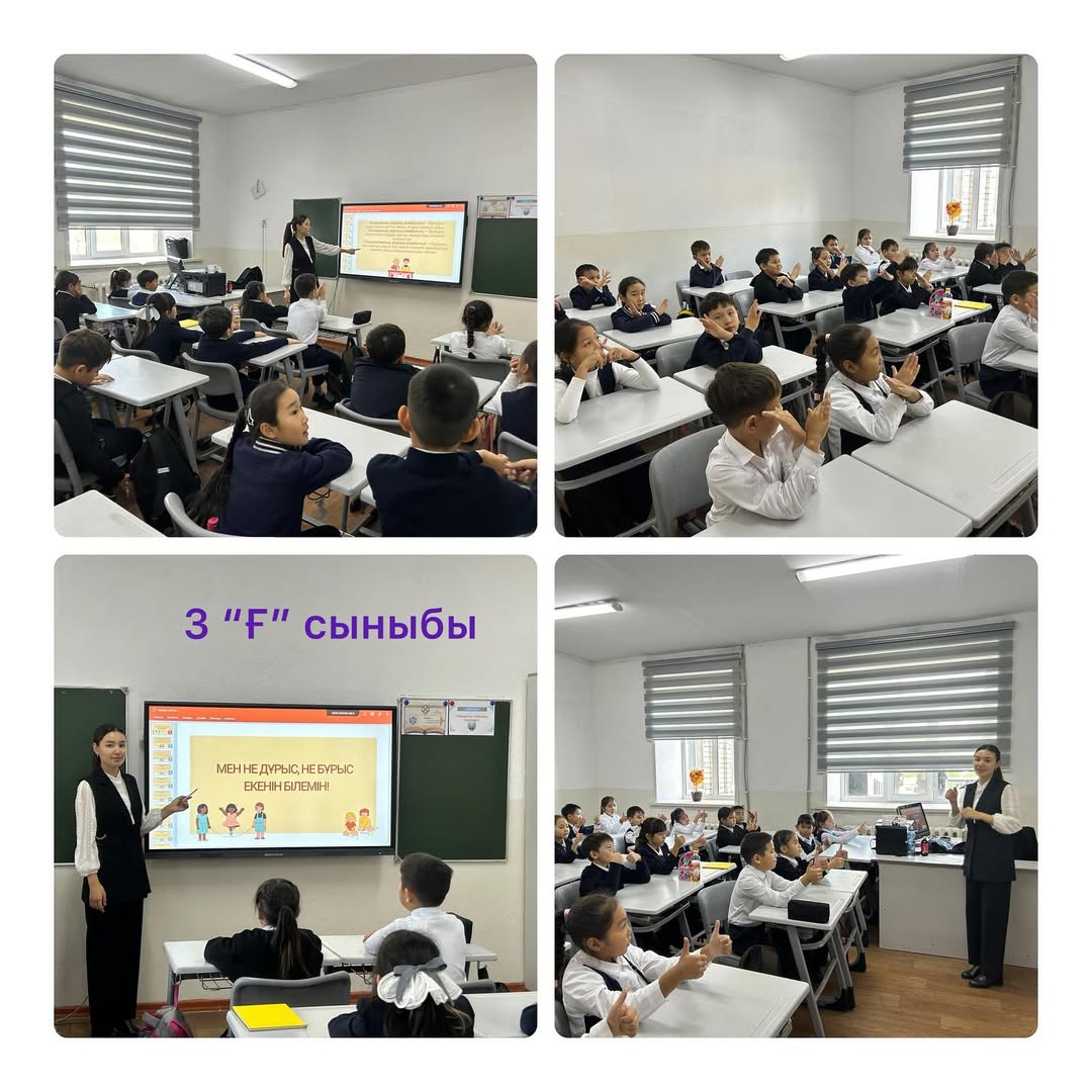 3-сыныптар арасында "Мен не дұрыс, не бұрыс екенін білемін" тақырыбында бірыңғай сынып сағаты өтті.