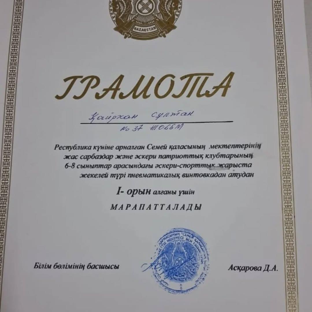 гимназиямыздың 6 «А»- «Жас Сарбаз» сыныбының оқушылары. Қайрхан Сұлтан мен Жағалбаева Амина қатысып, жүлделі І және ІІ орындарды иемденді.
