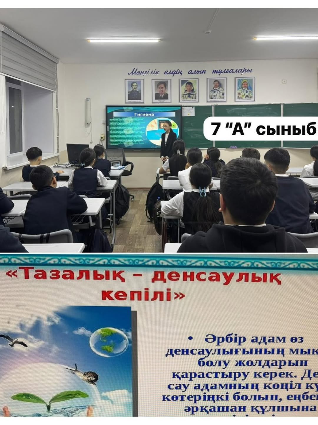 8 желтоқсан күні 7-сыныптарда "Жеке гигиена және денсаулық: маңызды әдеттер" тақырыбында бірыңғай тәрбие сағаты өтті.
