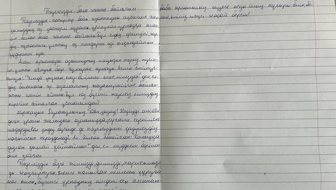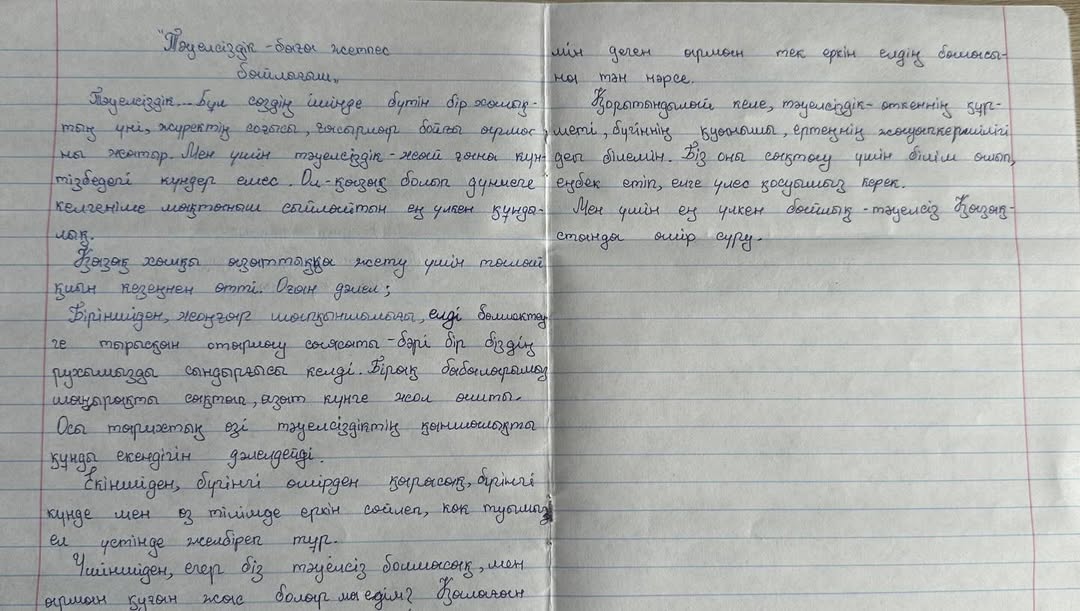 16 декабрь 2025 0 1 2 3 4 5 🔰12.12.2025 күні «Жас қаламгер» клубында 8–10 сыныптар арасында «Тәуелсіздік – баға жетпес байлығым» атты эссе байқауы өтті. Тақырыбы: Тәуелсіздік – баға жетпес байлығым.Үйірме жетекшісі: Сыдықова Ж.Т.