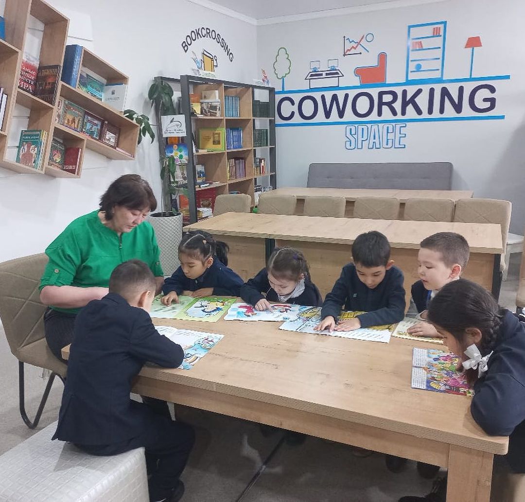 Коворкинг алаңында кітап оқудың маңыздылығын насихаттап оқушыларды кітап оқуға тарту мақсатында 1 А сынып оқушылары өздерінің кітапханадан алған кітаптарын оқыды. Сынып жетекшісі: Түсіпханова С.К.