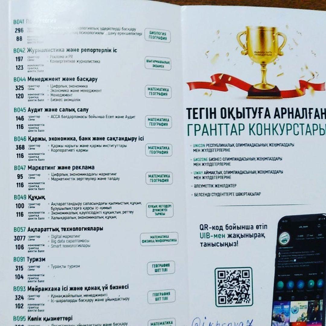 UIB-Кенжеғали Сағадиев атындағы Халықаралық Бизнес Университетінің UIB TEAM тобының жетекшісі - Жанерке Расулқызымен кездесу өткізді. Кездесу мақсаты- мектеп бітіруші түлектерге бейіндік пән таңдауға, мамандық таңдау жайлы дәріс өткізу, UNICON республикалық олимпиадасы туралы ақпарат беру.
