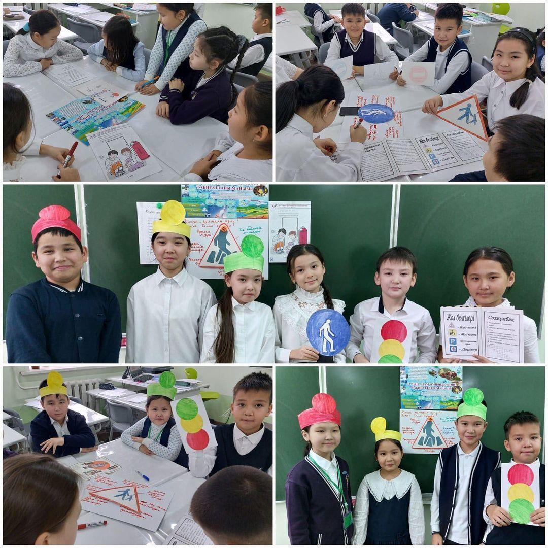 Оқушылар топқа бөлініп, жолдағы, үйдегі, қоғамдағы қауіпсіздік тақырыптарына постер құрып, қауіпсіздік ережелерін құрастырды, өз ойларын ортаға салды. Мұғалім қорытындылай келе, 1 тоқсан қорытындысына тоқталды және қауіпсіздік ережелерін қатаң сақтауды ескертті. Баланың қауіпсіздігін басты назарда ұстайық!