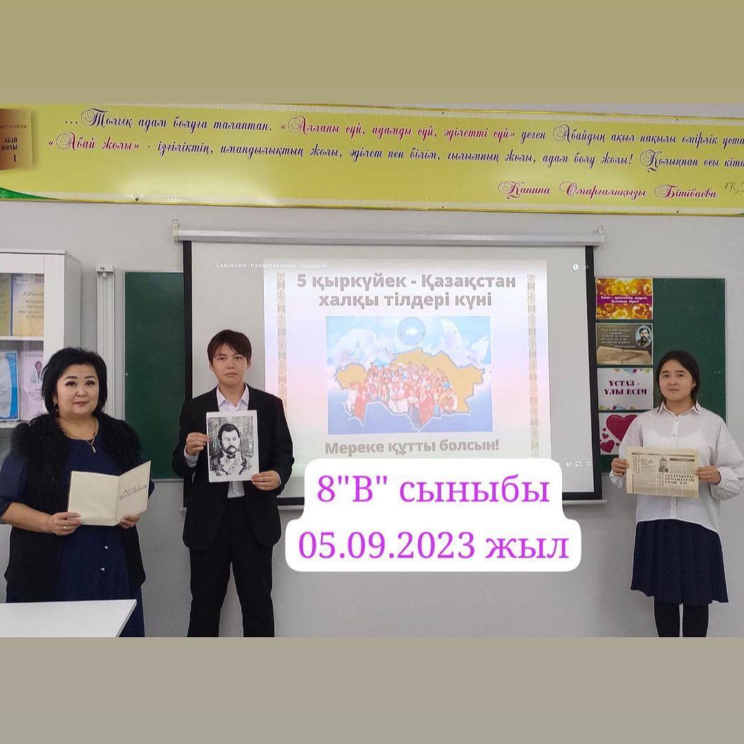 Сондай-ақ, бүгін ҚАЗАҚСТАН ХАЛҚЫ ТІЛДЕРІНІҢ МЕРЕКЕСІ. Осы атаулы мерекелерге орай, қазақ тілі пәні мұғалімі Құралай Құралтайқызы 8 "В" сыныбында "Ахмет Байтұрсынұлы-ұлт ұстазы" тақырыбында танымдық сабағын өткізді.